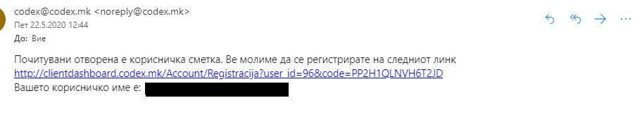 4. Откако сметководителот ќе ја пријави вашата е-маил адреса вие треба на истата да добиете порака со линк за регистрација.